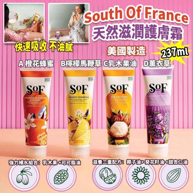 美國製造 South Of France 天然滋潤護膚霜 237ml (12月尾)