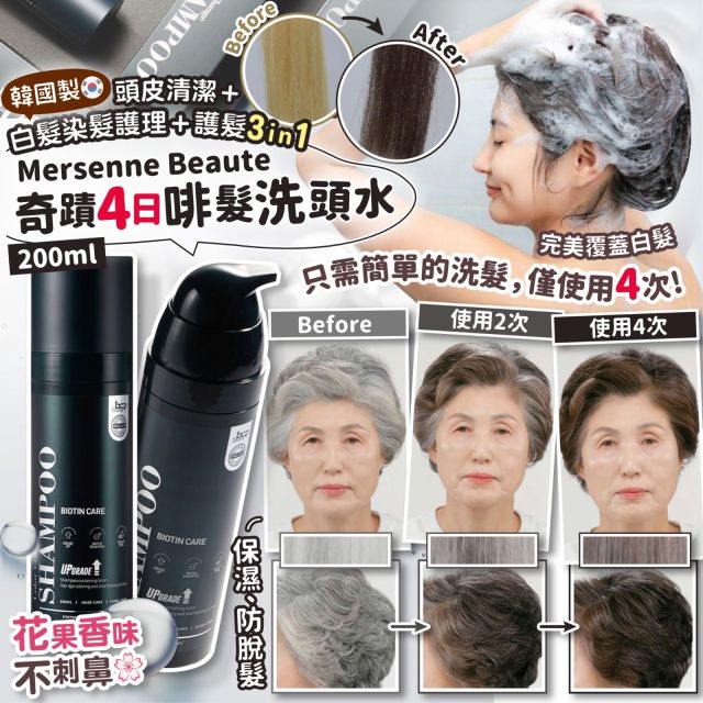 韓國製🇰🇷 Mersenne Beaute 奇蹟4日啡髮洗頭水200ml (10月尾)