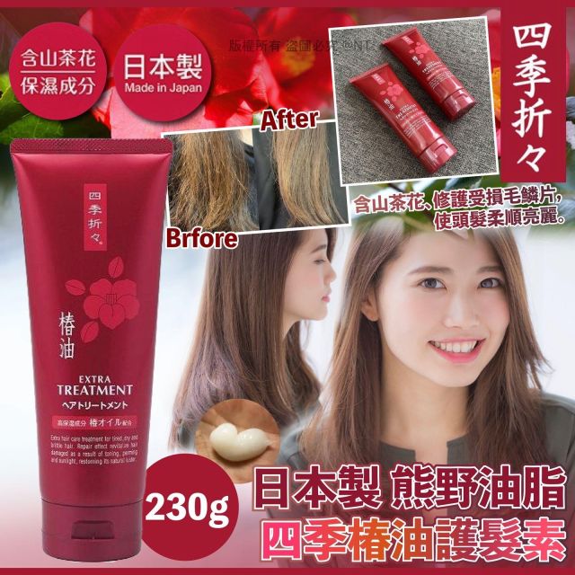 日本製熊野油脂 |四季椿油滋潤髮膜230g (11月中)