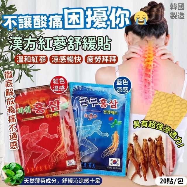 韓國製造 漢方紅蔘舒緩貼 20片/包 (共2款)【一組兩包】(11月尾)