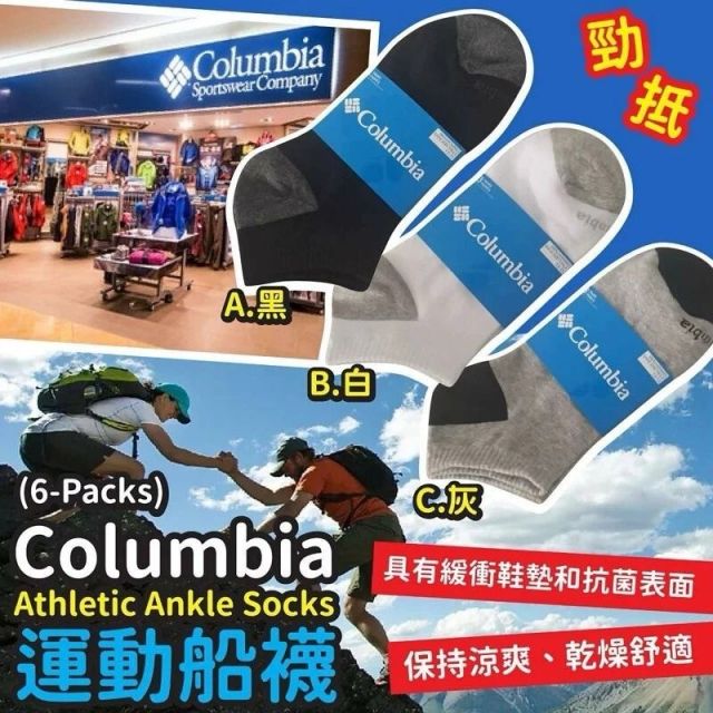 Columbia Athletic Ankle Socks 運動船襪 (1套6對) (6月中)
