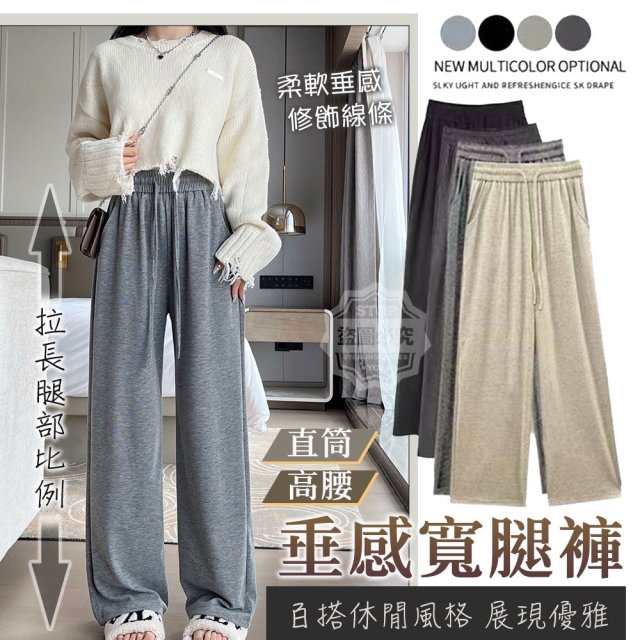 休閒舒適高腰直筒垂感寬腿褲(5月中)