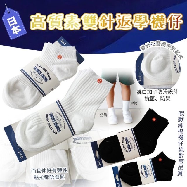 日本高質素雙針返學襪仔(1套6對) (5月尾)