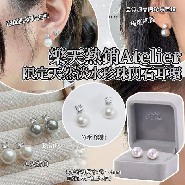 樂天熱銷Atelier 限定天然淡水珍珠閃石耳環