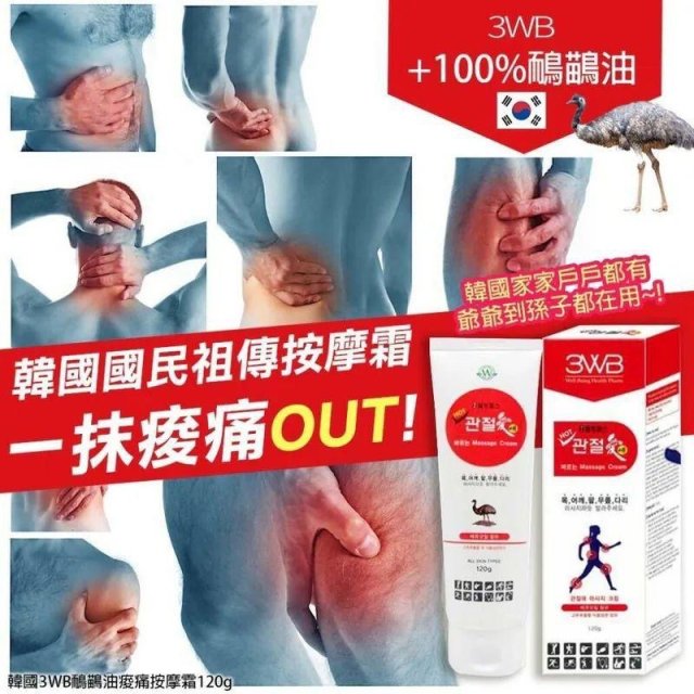 韓國3WB 鴯鶓油痠痛按摩霜 120g (9月尾)