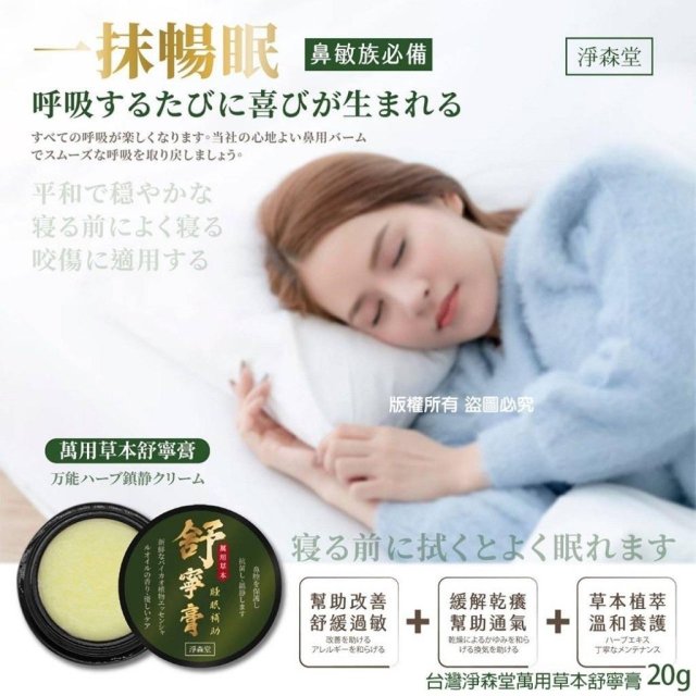 台灣淨森堂萬用草本舒寧膏20g (10月中)