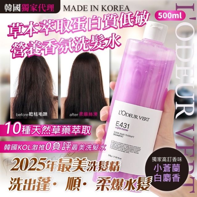 韓國製造🇰🇷 L'ODEUR VERT 草本萃取蛋白質低敏營養香氛洗髮水 500ml (10月中)