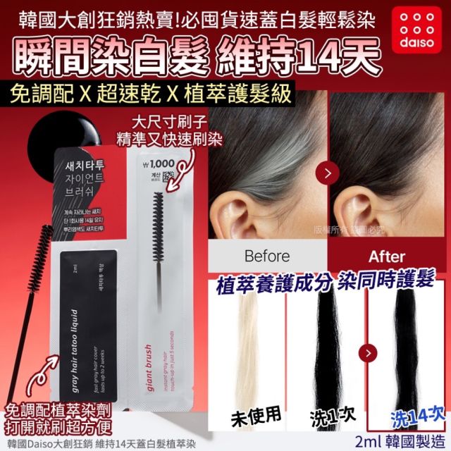 韓國 Daiso 維持14天蓋白髮植萃染 2ml (1套2包) (10月尾)