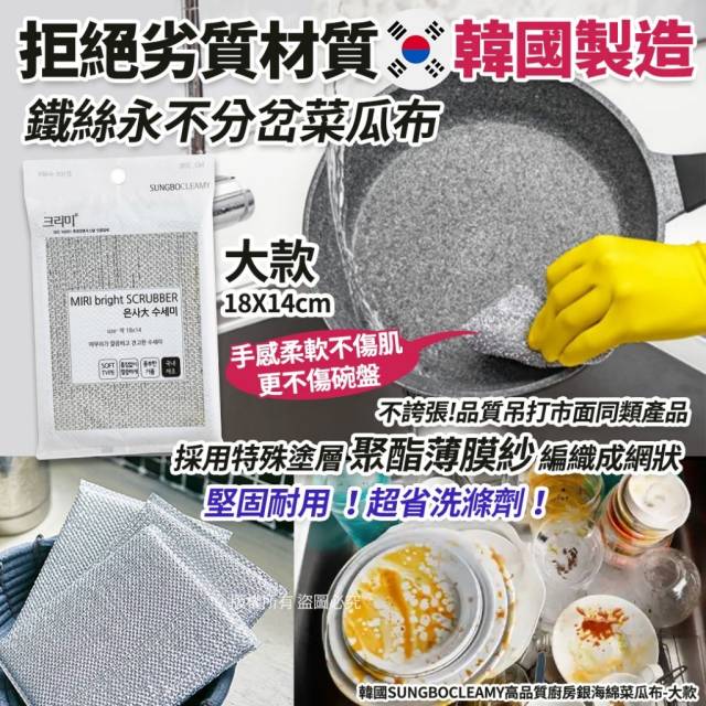 韓國 SUNGBOCLEAMY 高品質廚房銀海綿菜瓜布 (1套5個) (9月頭)