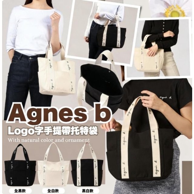 Agnes b Logo 字手提帶托特袋(約1-2星期到貨)