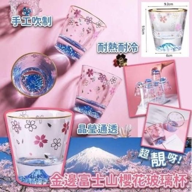 金邊富士山櫻花玻璃杯(約2-3星期到貨)