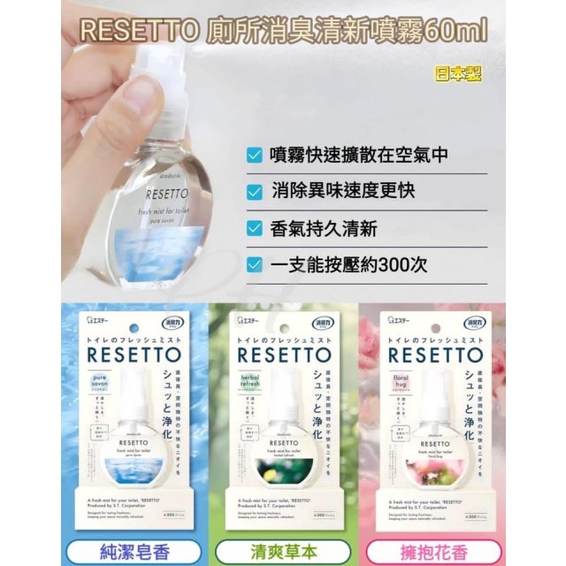 日本製 RESETTO廁所消臭清新噴霧60ml (約2-3星期到貨)