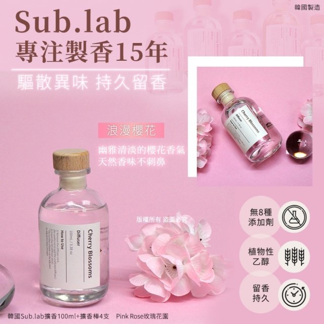 韓國Sub.lab擴香100ml+擴香棒4支-cherry blossom浪漫櫻花(單盒) (3月尾)