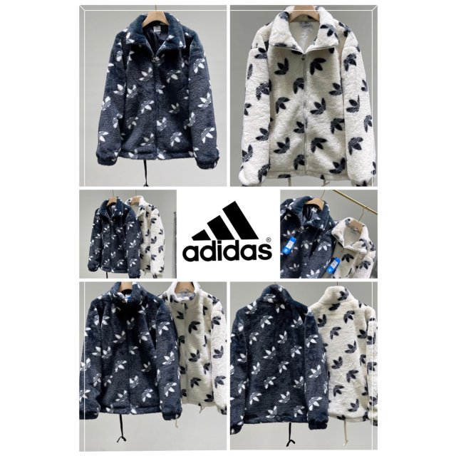 Adidas 新款三葉草滿印logo兔毛羊羔絨外套 (男女同款)