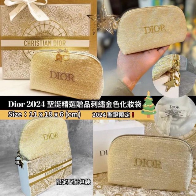 Dior 2024 聖誕精選贈品刺繡金色化妝袋(12月中)