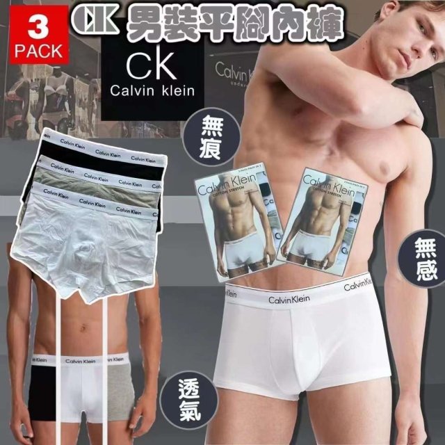 CAL*VIN KLE*IN男裝平腳內褲~ 一套3條(黑色/白色/灰色)(1月中)