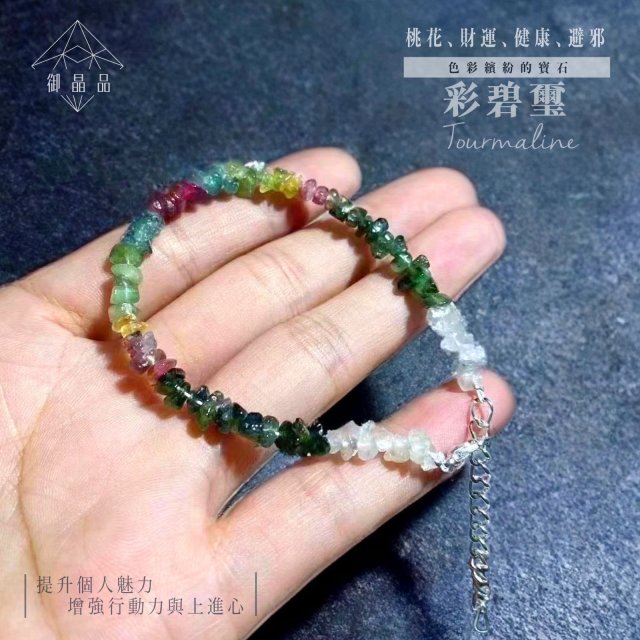 天然漸變彩虹碧璽原石手鍊 /2MM -3MM (12月頭)
