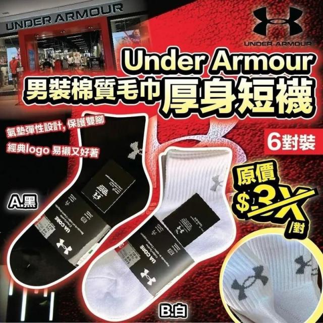 Under Armour男裝棉質毛巾厚身短襪-1套6對同色(12月中)