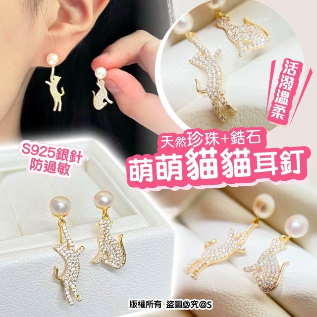 萌萌貓貓淡水珍珠耳釘(12月中)