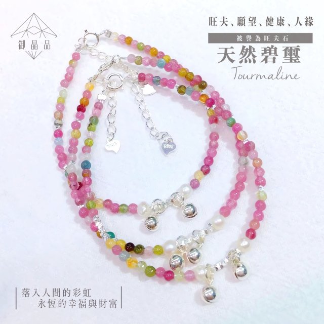 截天然碧璽搭配S925純銀單圈手鍊(12月中)