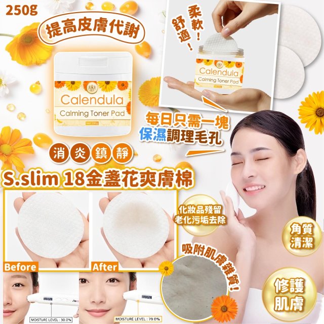 大大樽80片裝S.slim 18金盞花爽膚棉 250g (11月尾)