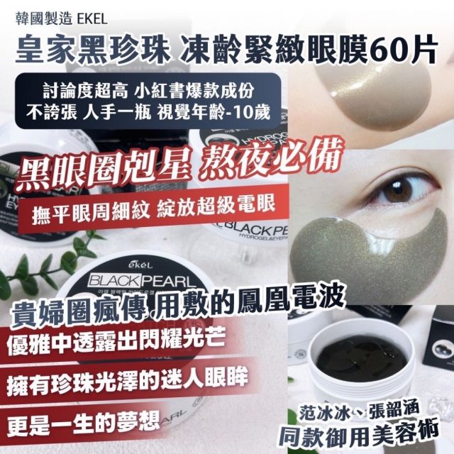 韓國製造 EKEL 皇家黑珍珠 凍齡緊緻眼膜 60片 (12月尾)