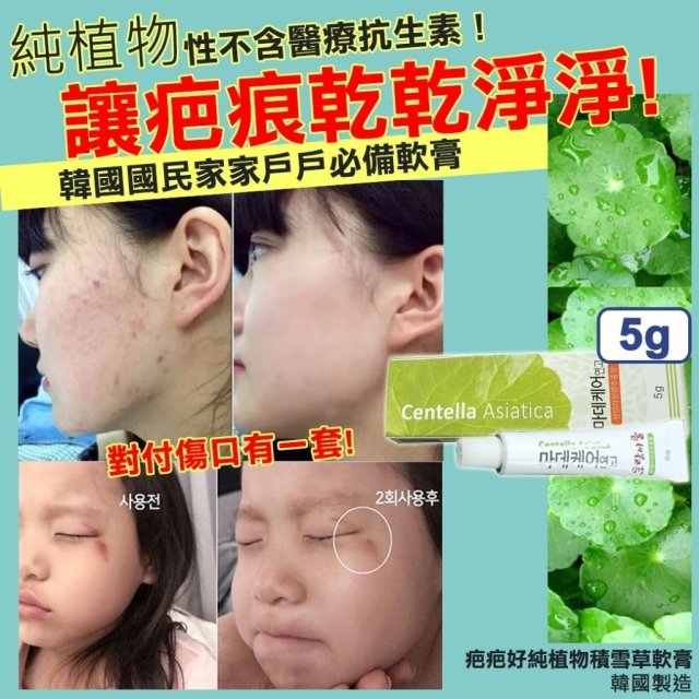 韓國製造疤疤好純植物積雪草軟膏5g (一套2支)(12月尾)