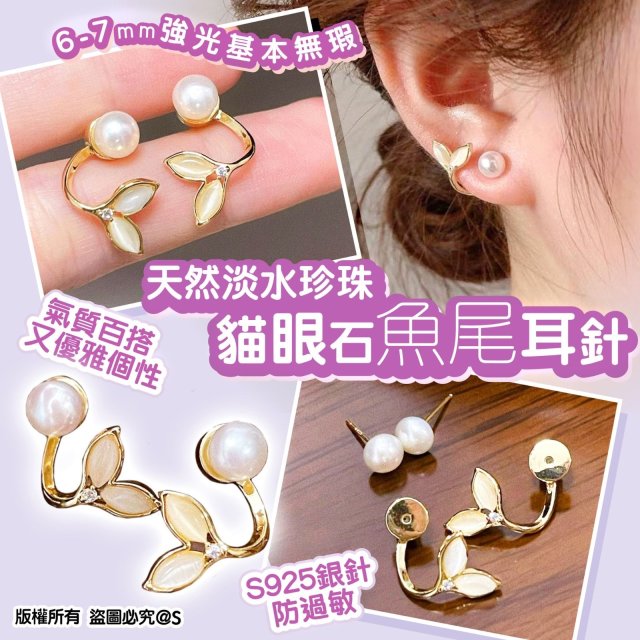 ⭐貓眼石魚尾珍珠耳釘⭐ (10月尾)