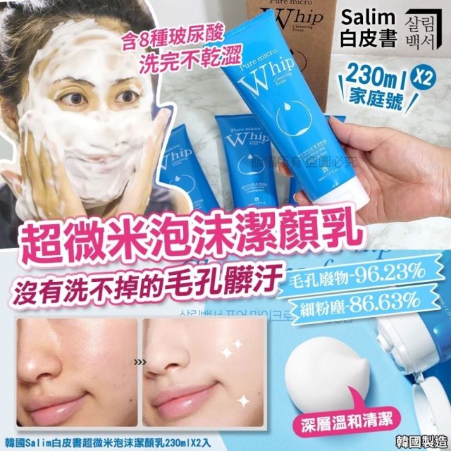 韓國Salim白皮書超微米泡沫潔顏乳230mlX2入(12月中)
