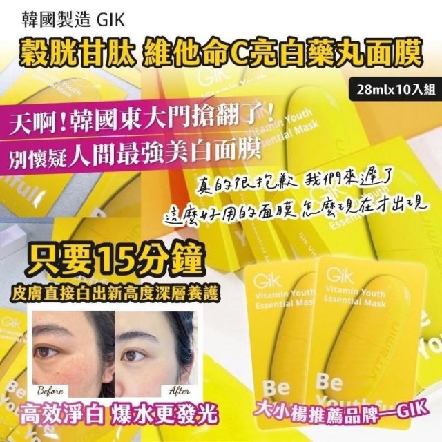 穀胱甘肽 維他命C亮白藥丸面膜(28mlx10入組) (11月尾)