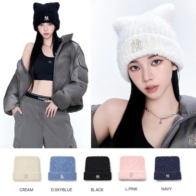 MLB 貓耳毛毛冷針織帽(約1-2星期到貨)