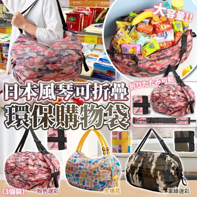 日本風琴可折疊環保購物袋(3個裝)(7月尾)