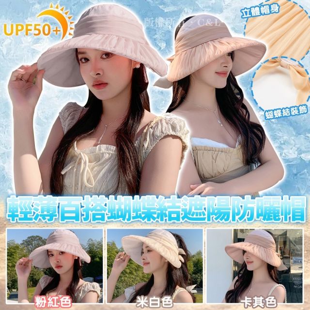 輕薄百搭蝴蝶結遮陽防曬帽(7月尾)