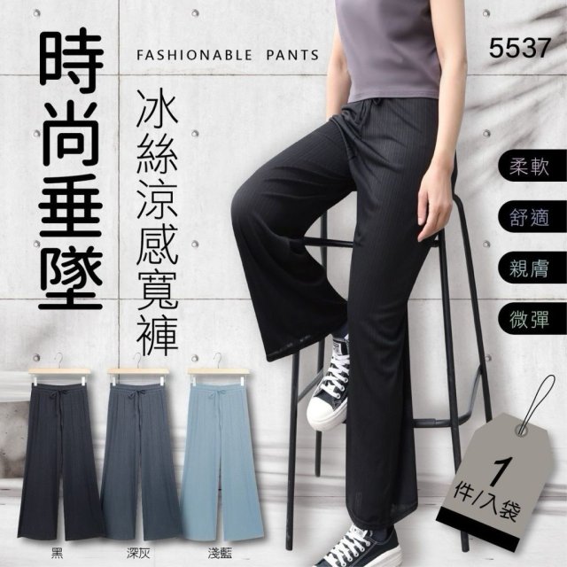 時尚垂墜冰絲涼感寬褲(台灣監製)(7月中)