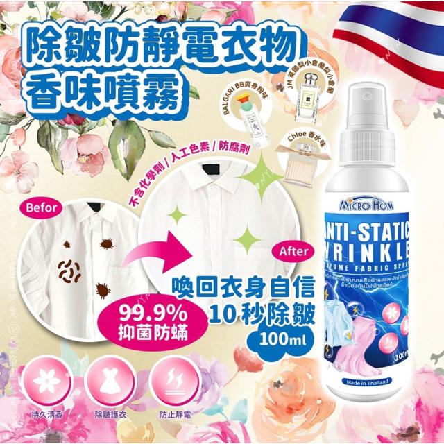 泰國直送 MIRCO HOM 除皺防靜電衣物香水味噴霧 100ml (6月尾)