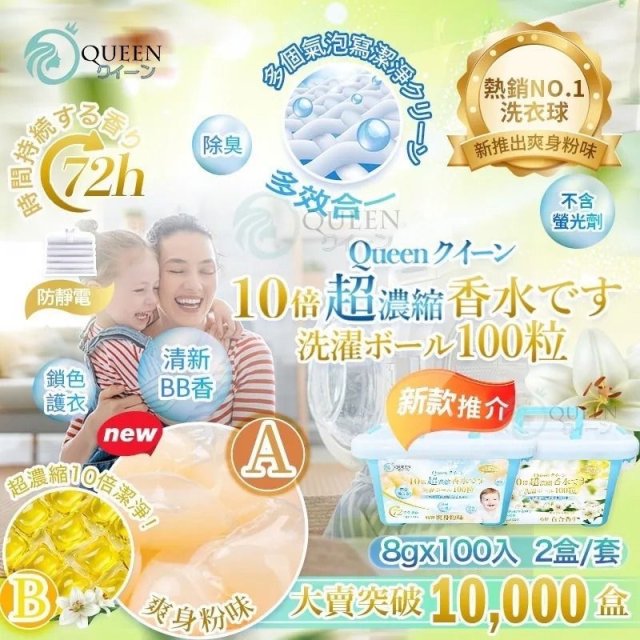 新10倍超濃縮茉莉花/爽身粉/百合香味洗衣球-1套2盒共200粒(11月中)