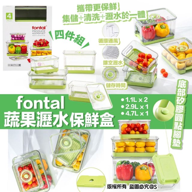 ⭐fontal 蔬果瀝水保鮮盒四件組⭐ (10月中)