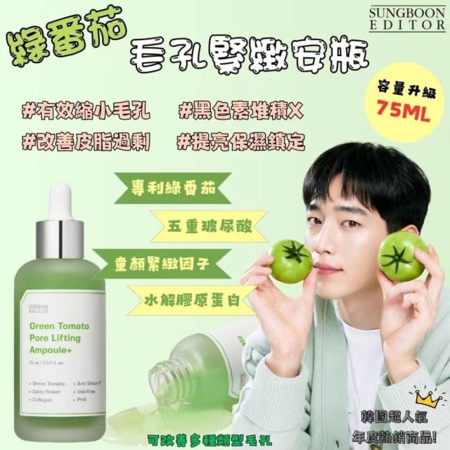 🌟🌟SUNGBOON🍏 綠蕃茄緊緻安瓶 75ml (9月尾)