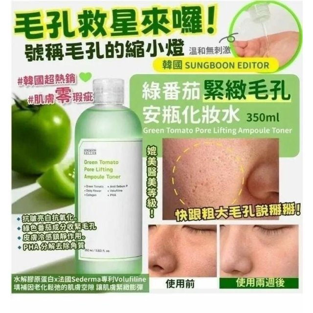 韓國Sungboon Editor綠蕃茄緊致毛孔爽膚水350ml (9月尾)