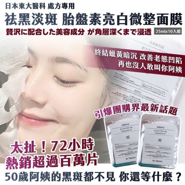 祛黑淡斑 胎盤素亮白微整面膜(25mlx10入組) (11月中)