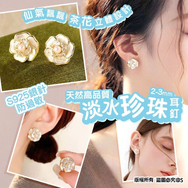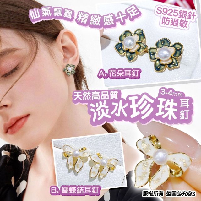 天然高品質淡水珍珠鑲嵌耳釘2-3 mm(10月頭)