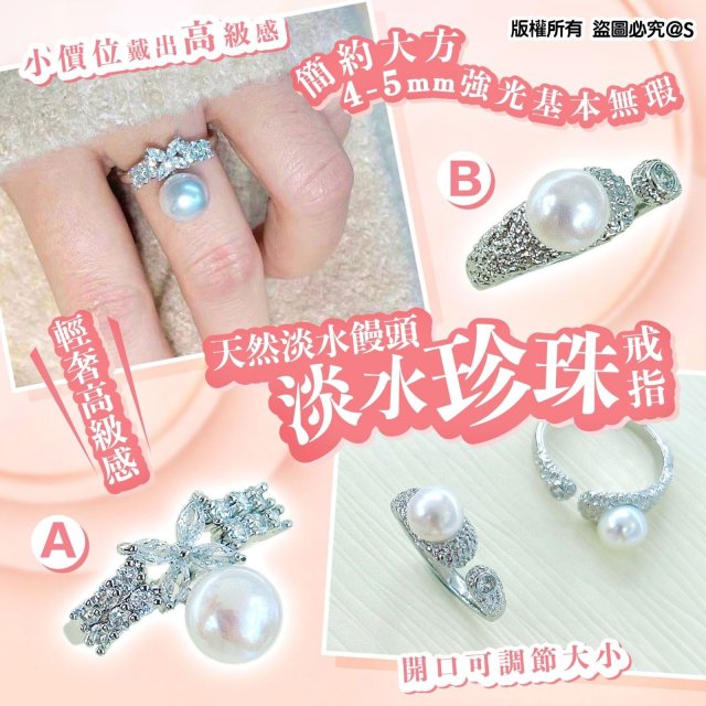 天然淡水饅頭珠珍珠戒指4-5mm (10月頭)