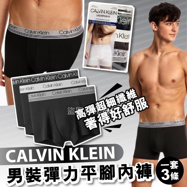 CALVIN KLEIN 男裝彈力平腳內褲 (1套3條) (11月頭)