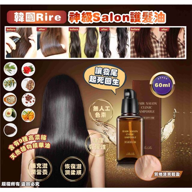 韓國 Rire 神級 Salon 護髮油60ml (11月尾)