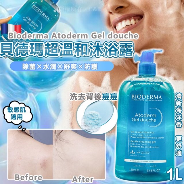 法國 Bioderma Atoderm Gel douche 貝德瑪超溫和沐浴露1L(藍色)(10月中)