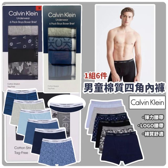 Calvin Klein 男童棉質四角內褲 (1盒6條) (10月尾)