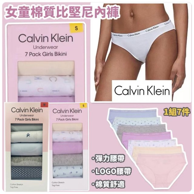 Calvin Klein 女童棉質比堅尼內褲 (1盒7條) (10月尾)