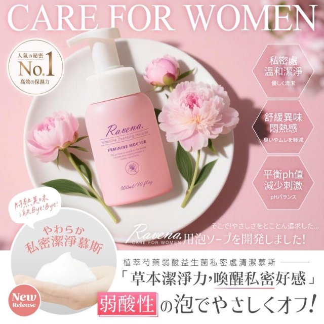台灣 Ravena 拉維娜植萃芍藥弱酸益生菌私密處清潔慕斯 300ml (11月中)