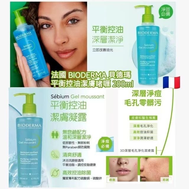 BIODERMA 貝德瑪 平衡控油潔膚凝露 200ml (10月中)