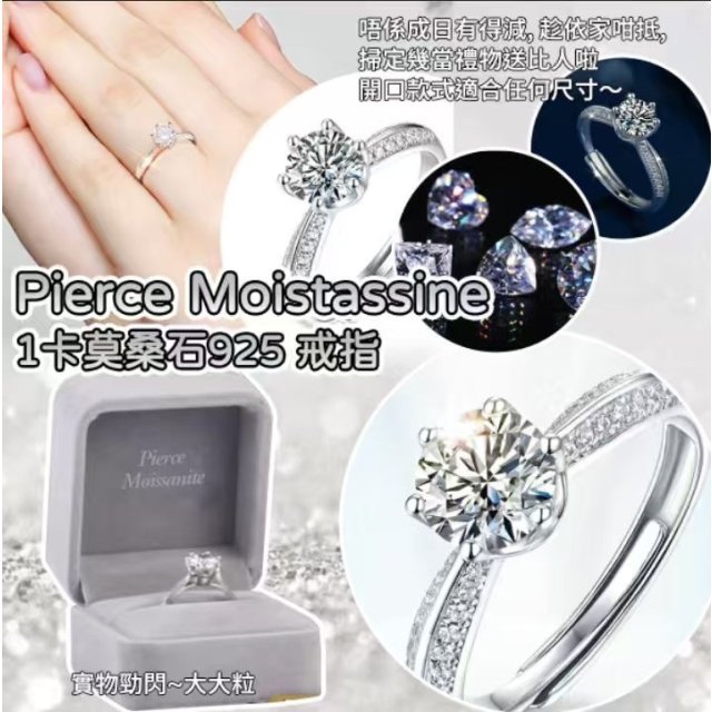 樂天新款 925 銀1卡莫桑石連碎石戒指連証書(11月尾)